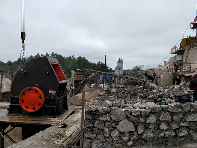 該款重錘破抗壓受力性能不大于200MPa,應(yīng)用物料200好幾種,常見的有石灰?guī)r、青石、煤矸石、大理石、磚渣、商砼塊等,粉碎物料不用初步破碎以及二破,可一次性將粒度在1000毫米的大巖石粉碎到50毫米以下,機械占有能耗較低、投資少的亮點。請看一個真實生產(chǎn)案例: