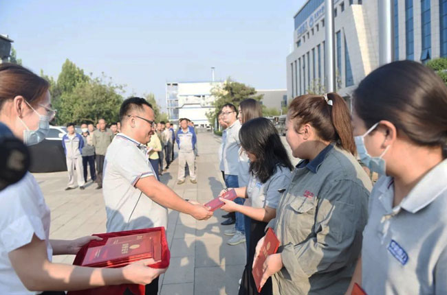 中譽(yù)鼎力總經(jīng)理?xiàng)钋瑸楸敬五噙x出的2名“一級(jí)技工”、6名“二級(jí)技工”進(jìn)行榮譽(yù)表彰,頒發(fā)獎(jiǎng)項(xiàng)。
