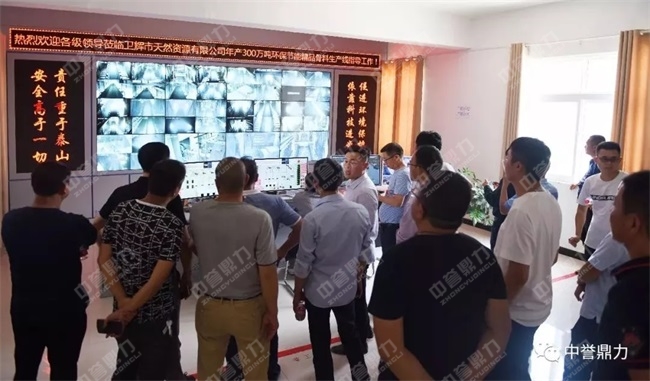 12日上午,考察團先后參觀了公司投資建設的藍天環(huán)保材料有限公司“多位一體”項目和EPC承建的孟電集團時產2500噸砂石骨料生產線。