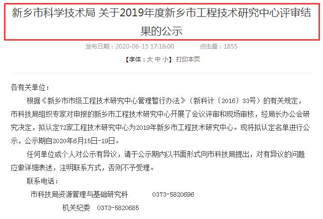 近日,新鄉(xiāng)市科學(xué)技術(shù)局發(fā)布《關(guān)于2019年度新鄉(xiāng)市工程技術(shù)研究評(píng)審結(jié)果的公示》。根據(jù)《新鄉(xiāng)市市級(jí)工程技術(shù)研究管理暫行辦法》(新科計(jì)〔2016〕33號(hào))有關(guān)規(guī)定,科學(xué)技術(shù)局組織開展了“2019年度新鄉(xiāng)市工程技術(shù)研究”申報(bào)工作。