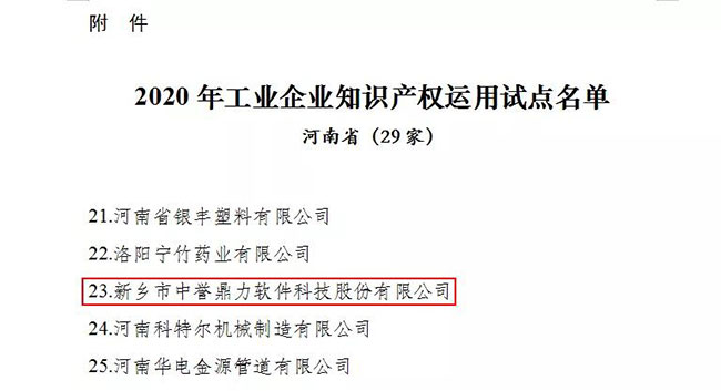 中譽(yù)鼎力入選工業(yè)企業(yè)知識(shí)產(chǎn)權(quán)運(yùn)用試點(diǎn)企業(yè)名單!