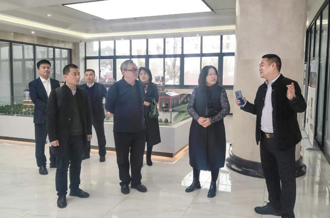 在中譽(yù)鼎力智能裝備有限公司綜合辦公樓,考察團(tuán)先后參觀了中譽(yù)鼎力發(fā)展歷程文化墻、多位一體循環(huán)建材產(chǎn)業(yè)園項(xiàng)目沙盤,并觀看了公司相關(guān)宣傳片,對(duì)中譽(yù)鼎力主營業(yè)務(wù)及近年來發(fā)展情況有了進(jìn)一步了解。