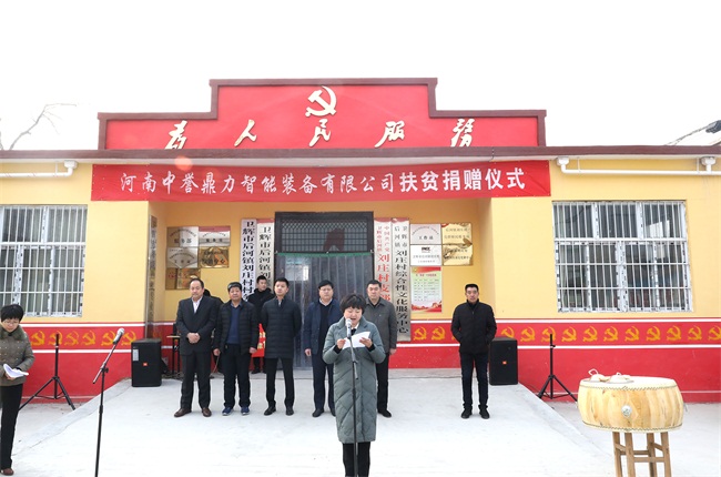 12月28日上午,河南中譽(yù)鼎力智能裝備有限公司扶貧捐贈(zèng)儀式在衛(wèi)輝市后河鎮(zhèn)劉莊村溫馨舉行。衛(wèi)輝市委常委、統(tǒng)戰(zhàn)部長(zhǎng)、市常務(wù)副市長(zhǎng)李海潮、衛(wèi)輝市人大常委會(huì)副主任史紅宇、衛(wèi)輝市委統(tǒng)戰(zhàn)部副部長(zhǎng)、工商聯(lián)黨組書記唐金江、衛(wèi)輝市工商聯(lián)合會(huì)會(huì)長(zhǎng)徐躍慶、衛(wèi)輝市后河鎮(zhèn)黨委書記徐林峰等導(dǎo)出席捐贈(zèng)儀式,河南中譽(yù)鼎力智能裝備有限公司董事長(zhǎng)張治民代表公司進(jìn)行現(xiàn)場(chǎng)捐贈(zèng),劉莊村部分村民參加儀式,共同見證了這激動(dòng)人心的時(shí)刻。