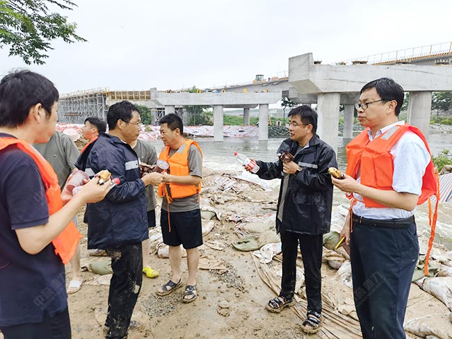 現(xiàn)場人員奮戰(zhàn)一夜,簡單的充饑后繼續(xù)投入工作