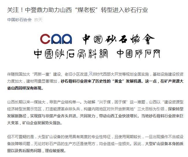 中砂石協(xié)會發(fā)表關(guān)于"中譽鼎力助力山西‘煤老板’轉(zhuǎn)型進入砂石行業(yè)"的報道