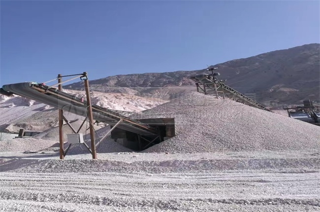 與純石灰?guī)r相比,化工石灰?guī)r含鈣量較高,一般呈致密塊狀產(chǎn)出,顏色常為灰白、淺灰、灰色、深灰及淺黃、淺紅等,一般采用露天開(kāi)采,電鏟汽車皮帶運(yùn)輸,選礦采用破碎篩分方法。在這條時(shí)產(chǎn)500噸破石子生產(chǎn)線圖片中我們可以看到,石灰石被均勻的輸送到入料倉(cāng)內(nèi),依次經(jīng)過(guò)振動(dòng)給料機(jī)、破碎機(jī)、振動(dòng)篩加工處理成客戶需要的石子規(guī)格。