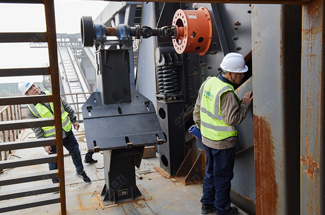 在項(xiàng)目建設(shè)現(xiàn)場,售后服務(wù)團(tuán)隊(duì)深入破碎機(jī)頂部認(rèn)真檢查每一個(gè)配件,并就項(xiàng)目的安裝、設(shè)計(jì)工藝等進(jìn)行詳細(xì)說明和安裝指導(dǎo)。
