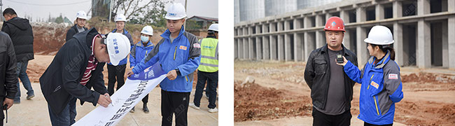 這里清新的空氣、宜人的風(fēng)景讓大家心曠怡。售后服務(wù)團(tuán)隊(duì)到達(dá)項(xiàng)目現(xiàn)場后,先與鑫象建材項(xiàng)目負(fù)責(zé)人楊總在會(huì)議室就項(xiàng)目在建過程中遇到的問題、難題等進(jìn)行詳細(xì)交流,例如雨水較多帶來的基礎(chǔ)滲水問題,楊總希望我們能給出建議,幫助其解決問題。