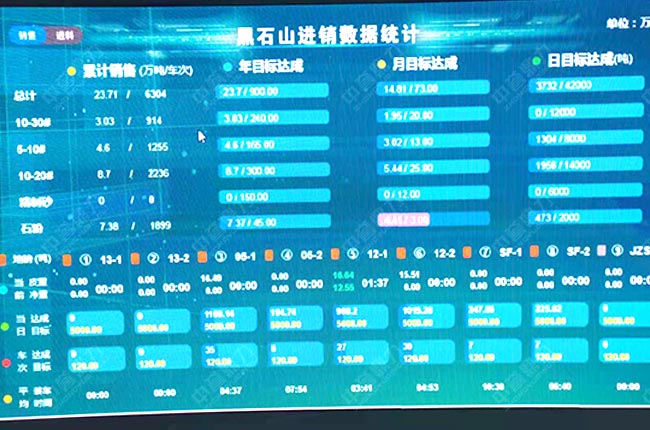 河南固始縣新旭礦業(yè)時產(chǎn)3000噸骨料生產(chǎn)線礦山生產(chǎn)管理系統(tǒng)顯示大屏