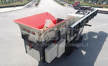 振動篩出料口設有分料斗,將每層物料分別是護送到對應的皮帶機上,成品篩可篩分4種骨料,不滿足粒度要求的物料,被返料輸送帶送回破碎機再次破碎,振動篩型號也可以根據移動破碎篩分站產能大小靈活選擇。