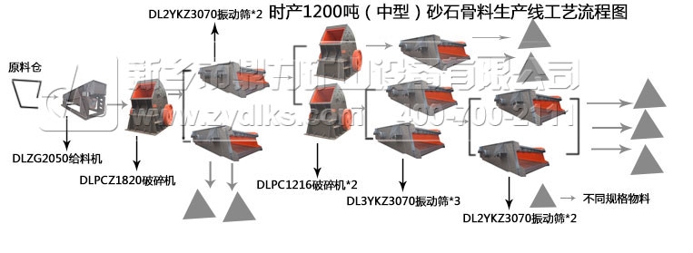 物料由原料倉進入振動給料機物料受力均勻,勻速進入破碎機內(nèi)腔進行破碎作用,破碎物料經(jīng)過兩臺振動篩進行篩分,出一部分成品料,一部分破碎后物料再進入二級破碎機進行再次破碎加工,獲得符合物料顆粒粒度的成品料。