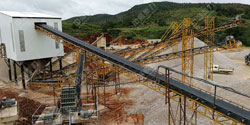 石頭原料使用振動(dòng)給料機(jī)設(shè)備輸送至破碎機(jī)進(jìn)行破碎處理,大型破碎機(jī)設(shè)備可以將大塊的石頭破碎成較小的物料,破碎后的石料再經(jīng)過(guò)振動(dòng)篩進(jìn)行篩分選級(jí),篩選出符合規(guī)格尺寸的石料,由成品輸送帶送至成品料區(qū),不符合規(guī)格的石料由返料皮帶返回至破碎機(jī)再次進(jìn)行破碎。根據(jù)生產(chǎn)需求破碎篩分后的一部分石料需要進(jìn)行制砂處理,使用制砂機(jī)設(shè)備將物料進(jìn)行細(xì)碎、整形破碎,加工成符合規(guī)格的砂子料。一般產(chǎn)線為提高砂料的品質(zhì),還會(huì)配置洗砂機(jī)對(duì)砂子進(jìn)行清洗,提高其質(zhì)量,然后由成品輸送帶送至成品料倉(cāng)。