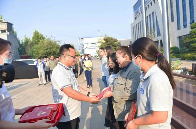 中譽(yù)鼎力總經(jīng)理?xiàng)钋瑸楸敬五噙x出的2名“一級(jí)技工”、6名“二級(jí)技工”進(jìn)行榮譽(yù)表彰,頒發(fā)獎(jiǎng)項(xiàng)。