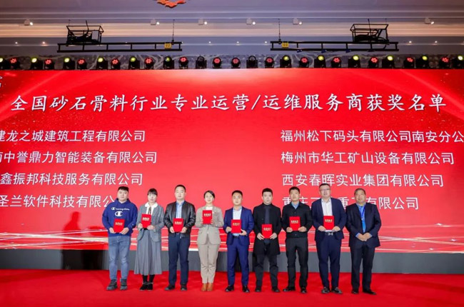 表彰先進(jìn),樹(shù)立典范,推動(dòng)砂石行業(yè)向更高層次發(fā)展,在2023年度砂石及裝備行業(yè)表彰會(huì)上——河南中譽(yù)鼎力智能裝備有限公司喜獲全國(guó)砂石骨料行業(yè)“專(zhuān)業(yè)運(yùn)營(yíng)/運(yùn)維服務(wù)商”和“優(yōu)秀裝備供應(yīng)商”兩項(xiàng)榮譽(yù)表彰;中譽(yù)鼎力合作企業(yè)甘肅平?jīng)鲂率兰o(jì)建材、河南鶴壁淇縣恒源礦業(yè)、重慶中材參天建材等相關(guān)項(xiàng)目獲評(píng)“2020年度綠色砂石基地”!