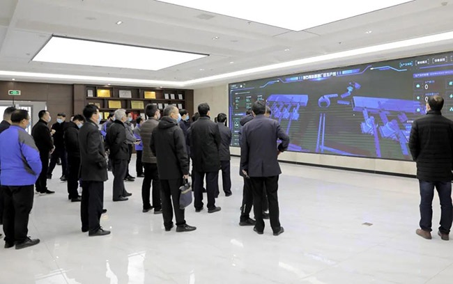 在中譽鼎力智能裝備公司廠區(qū),張治民董事長向各位導(dǎo)詳細(xì)介紹了中譽鼎力數(shù)據(jù)、“五位一體”循環(huán)建材產(chǎn)業(yè)園及一體化智能生產(chǎn)車間。