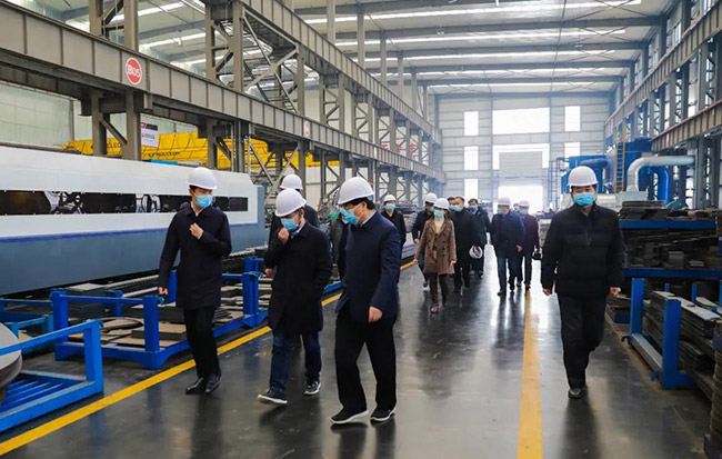 衛(wèi)輝市市長范士富、衛(wèi)輝市常務副市長李志勇、副市長董岐山等導程陪同指導調研。中譽鼎力董事長張治民詳細匯報了中譽鼎力的疫情防控工作和復工復產情況。