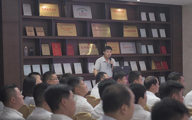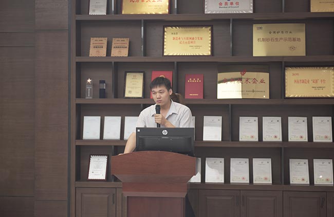 發(fā)布會上,河南中譽鼎力智能裝備有限公司技術部長劉海淘先后為大家介紹了DLPCZ、DLPC系列錘式破碎機、DL2YKZ3070振動篩密封鋼構、給料+破碎整體鋼構、移動式破碎站、干法制砂樓、選粉機等公司新上市設備,對設備的特點、分類、組成及安裝維護等內容進行了詳細的講解與說明,讓各地服務銷售代表對公司新上市設備及其優(yōu)勢有了更深層次的了解和認識,便于今后營銷服務工作的開展。