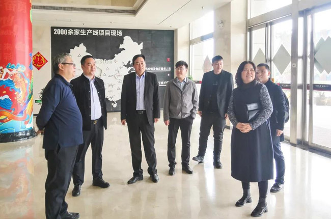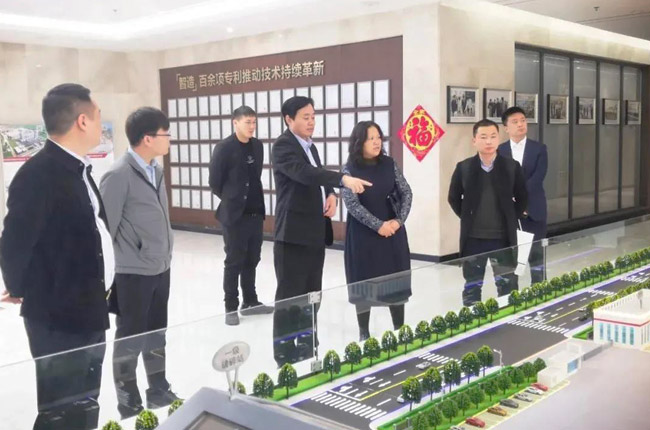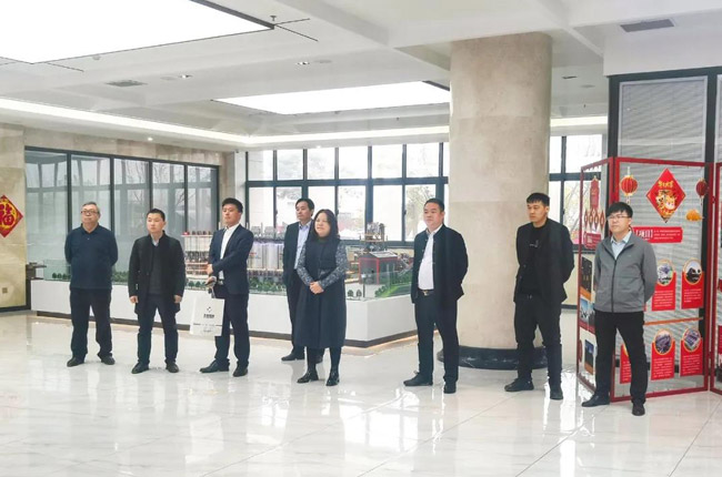 在中譽(yù)鼎力智能裝備有限公司綜合辦公樓,考察團(tuán)先后參觀了中譽(yù)鼎力發(fā)展歷程文化墻、多位一體循環(huán)建材產(chǎn)業(yè)園項(xiàng)目沙盤,并觀看了公司相關(guān)宣傳片,對(duì)中譽(yù)鼎力主營業(yè)務(wù)及近年來發(fā)展情況有了進(jìn)一步了解。
