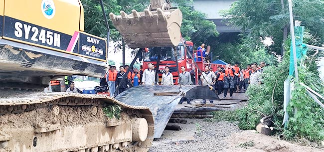 現(xiàn)場的施工人員說:在聶書記的帶下,我們奮戰(zhàn)了一天一夜,終于將東孟河堤打通,成功泄洪,排水量一天達到150萬方,還會一鼓作氣再打通幾個,爭取在短時間內(nèi)將城市積水排完!