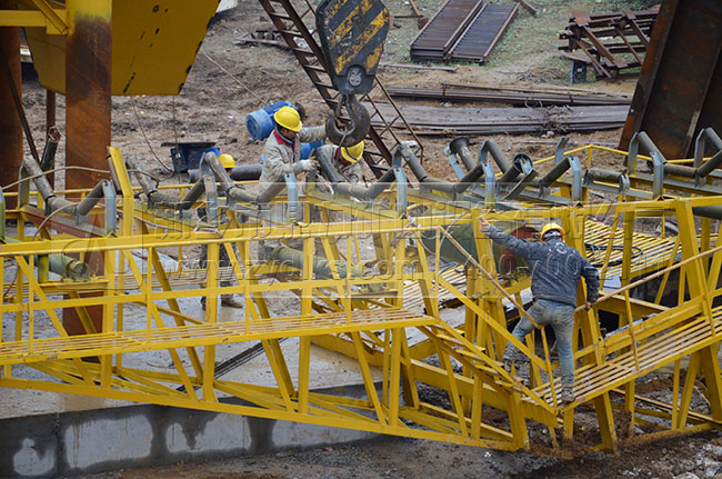 圖為正在安裝中的破碎設備