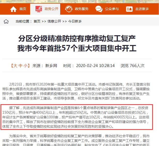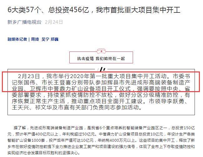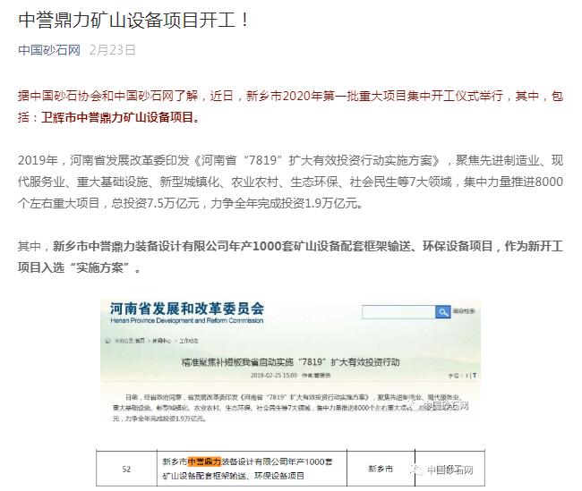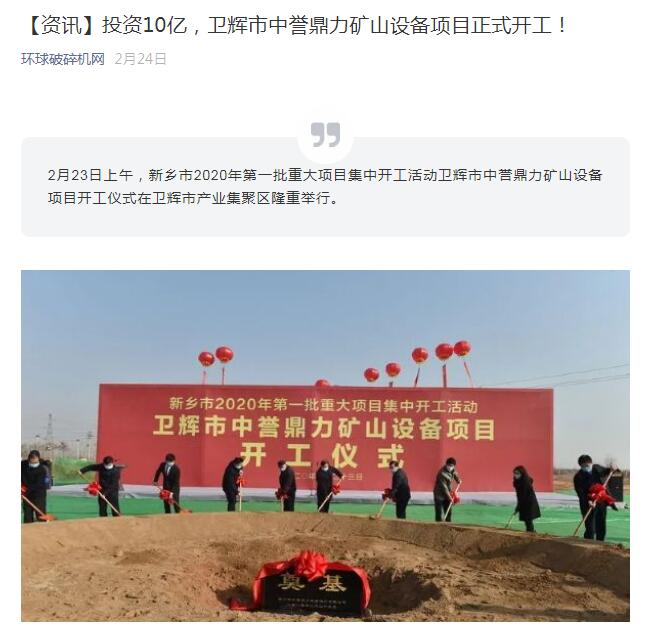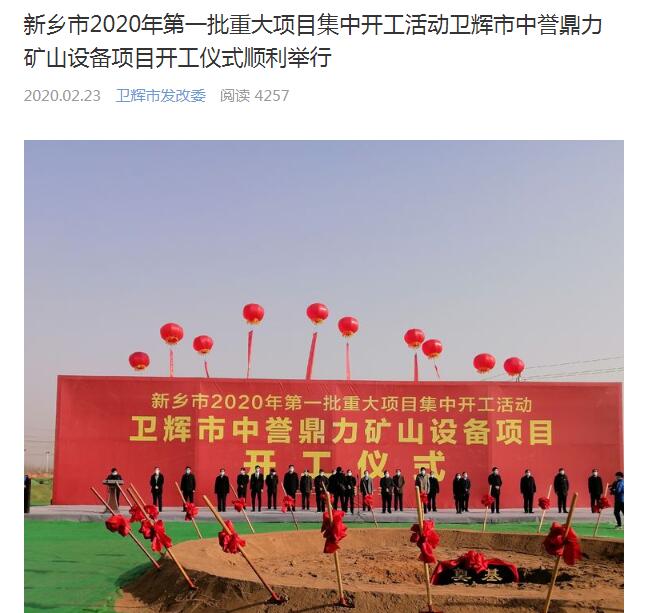 報道鏈接:【資訊】投資10億,衛(wèi)輝市中譽(yù)鼎力礦山設(shè)備項目正式開工!
