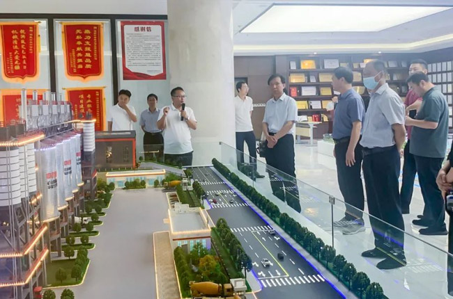 視察組領(lǐng)導(dǎo)參觀中譽(yù)鼎力十二位一體建材產(chǎn)業(yè)園沙盤