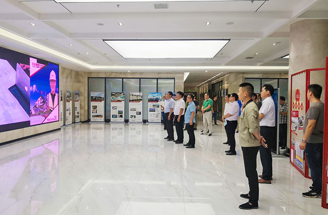 在中譽鼎力智能裝備有限公司綜合辦公樓,調研導先后參觀了企業(yè)文化墻和多位一體循環(huán)建材產業(yè)園項目沙盤,并觀看了公司宣傳片,對中譽鼎力發(fā)展歷程、主營業(yè)務、業(yè)績榮譽等情況有了進一步了解。