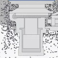 水平軸在電機(jī)帶動(dòng)下旋轉(zhuǎn),通過(guò)齒輪帶動(dòng)偏心套旋轉(zhuǎn),偏心套帶動(dòng)動(dòng)錐做圓錐擺動(dòng),與定錐形成連續(xù)擠壓,達(dá)到破碎石塊的目的。 通過(guò)調(diào)整動(dòng)錐底部的液壓缸,可以使動(dòng)錐上下運(yùn)動(dòng),從而控制排礦口的大小,進(jìn)而達(dá)到調(diào)成產(chǎn)品粒度大小的目的。液壓缸具有過(guò)鐵保護(hù)功能,當(dāng)有不可破碎物進(jìn)入破碎腔,液壓缸控制動(dòng)錐下落,不可破碎物下落排出后,動(dòng)錐自動(dòng)恢復(fù),設(shè)備恢復(fù)到正常工作狀態(tài)。
