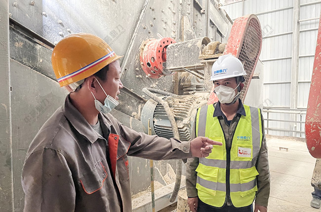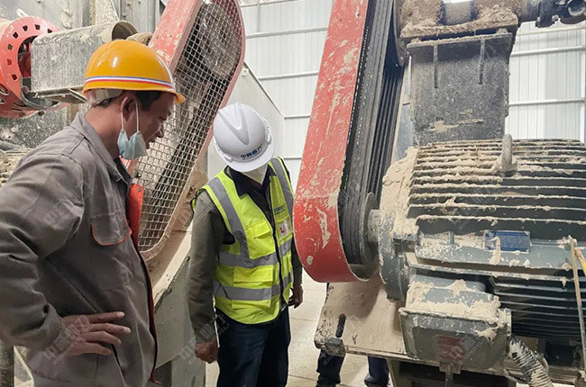 聽完項(xiàng)目負(fù)責(zé)人尚總對(duì)項(xiàng)目的情況介紹后,售后服務(wù)萬里行團(tuán)隊(duì)一行來到時(shí)產(chǎn)1000噸石子生產(chǎn)線現(xiàn)場(chǎng),對(duì)設(shè)備使用情況進(jìn)行詳細(xì)排查與維修。