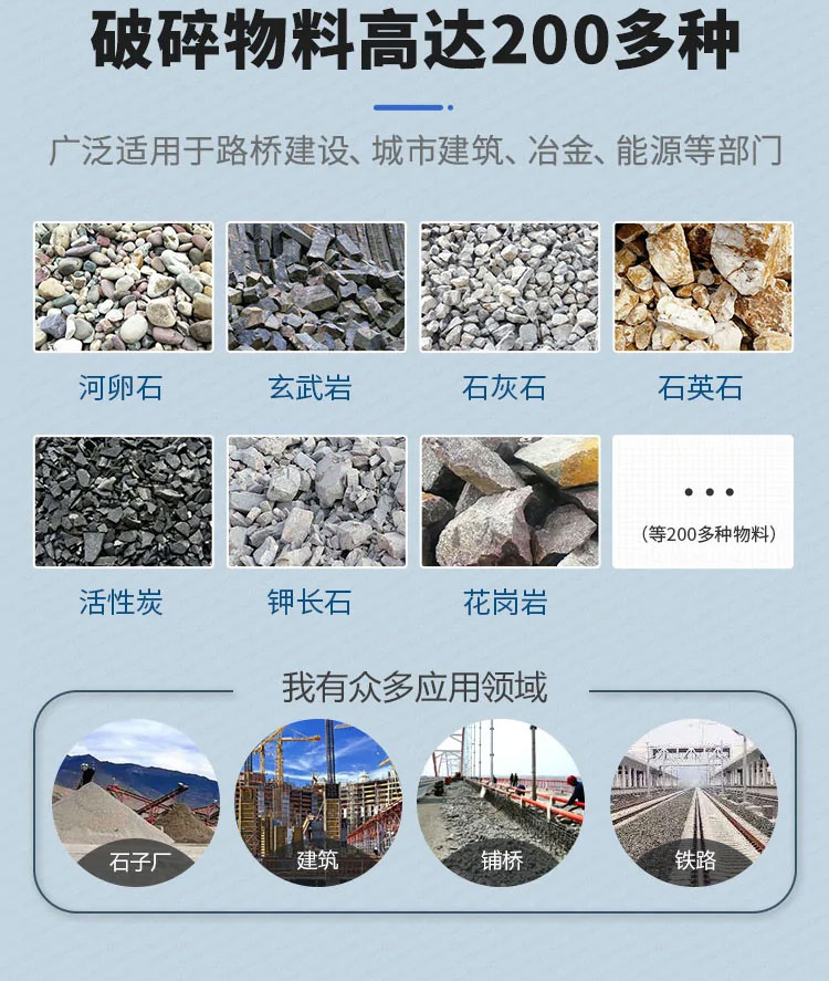 | 適應(yīng)物料: | 石英石、鈣石、花崗巖、玄武巖、石灰石、輝綠巖、鐵礦石等 |